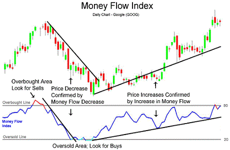 The chart below of Google (GOOG) stock shows the Money Flow Index in action: